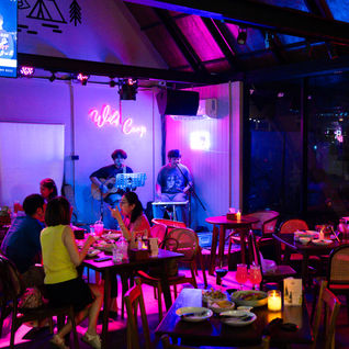 ร้านกาแฟ ขนม อาหาร บาร์ มีเครื่องดื่มแอลกอฮอล์ เบียร์คราฟท์ สไตล์ร้านแคมป์ แบบยกระดับที่นั่งสบาย มีทั้งโซนห้องแอร์ และโซนนอกร้าน บรรยากาศฟิลล์ธรรมชาติเขาใหญ่ เวลา 20.00 น. มีดนตรีสด